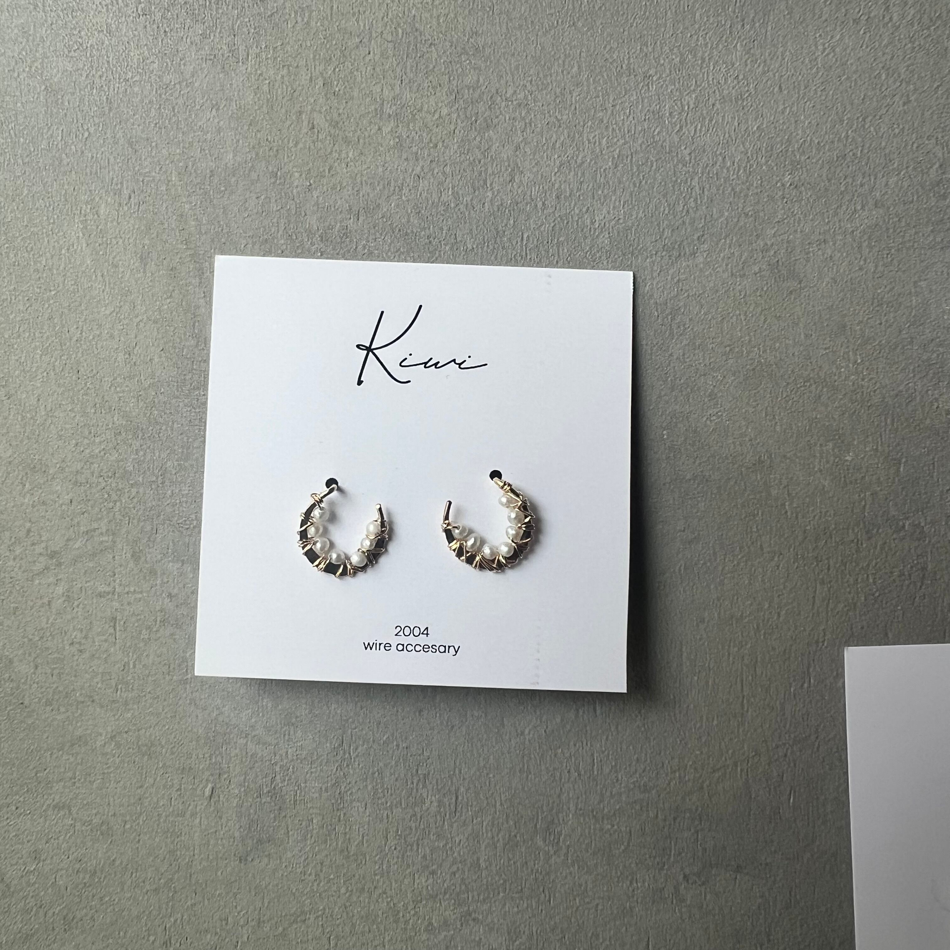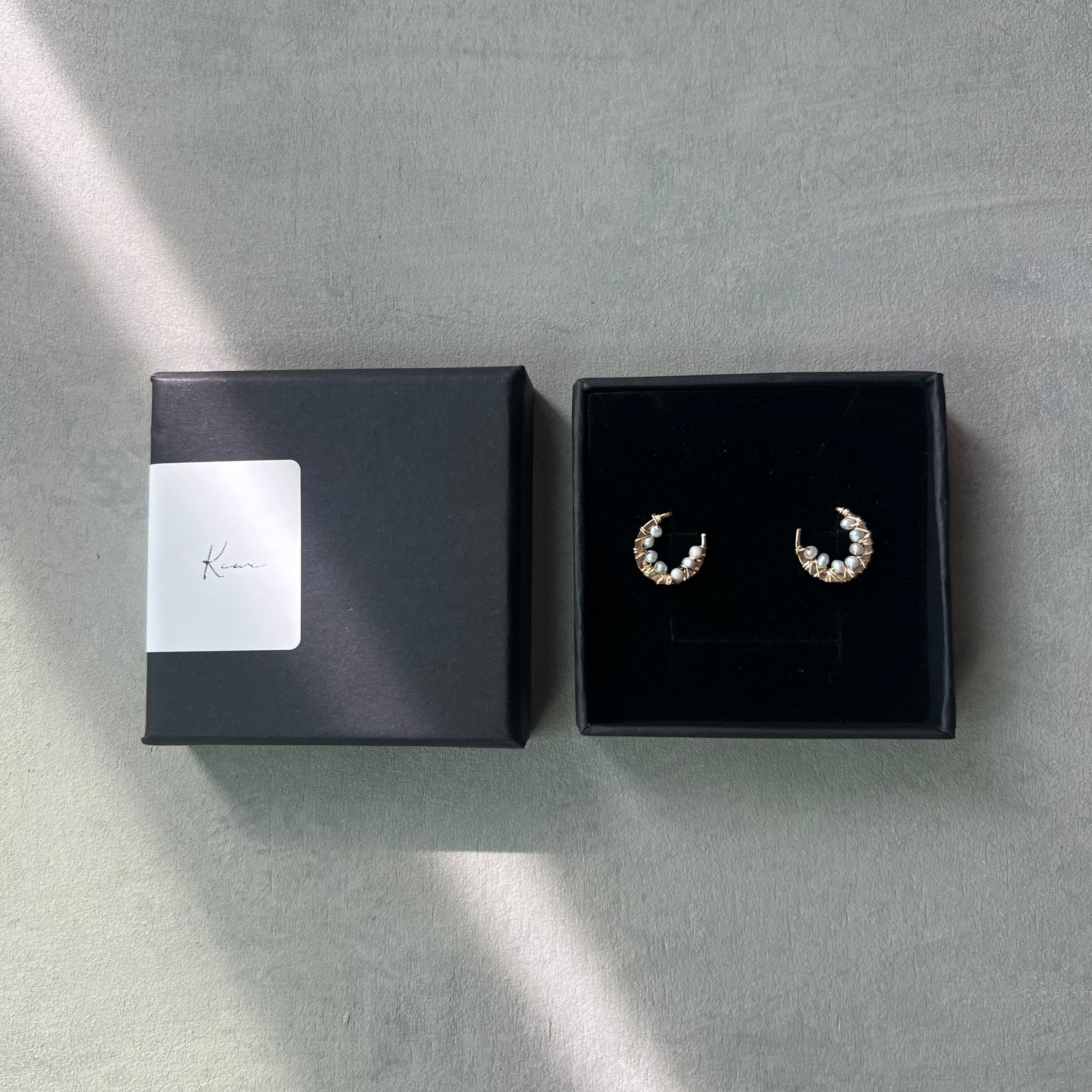 コイルのベースに、極小サイズの淡水パールを丁寧に巻きつけて仕上げています。使用しているのは、照りの美しい上質な淡水パール。小ぶりなサイズ感だからこそ、上品さが際立ち、耳元に凛とした華やぎを添えてくれます。
