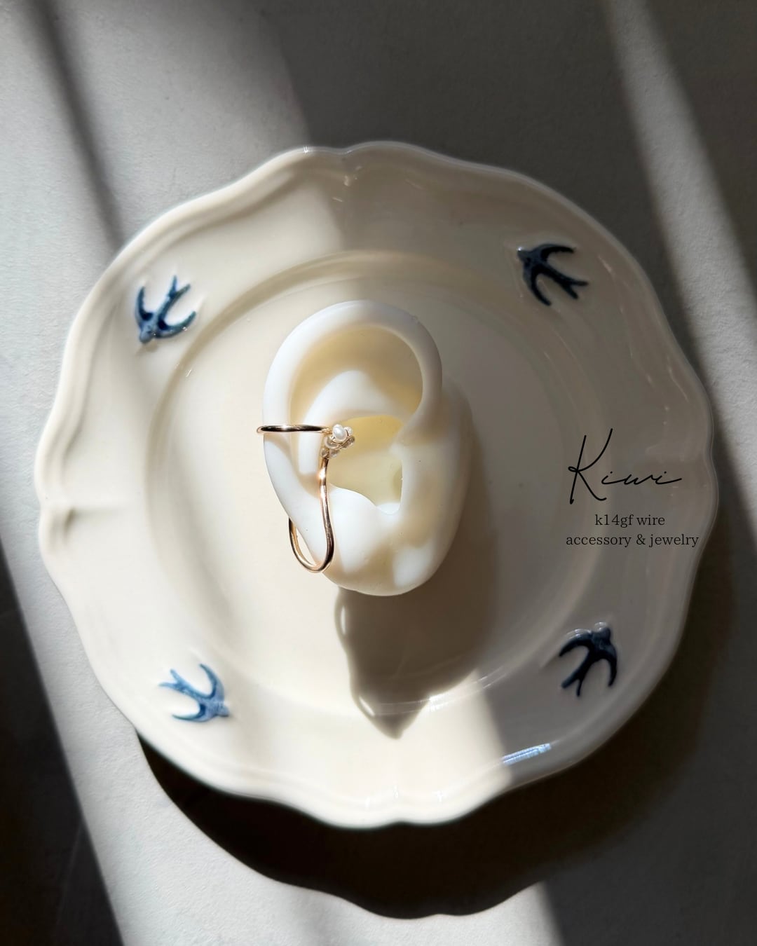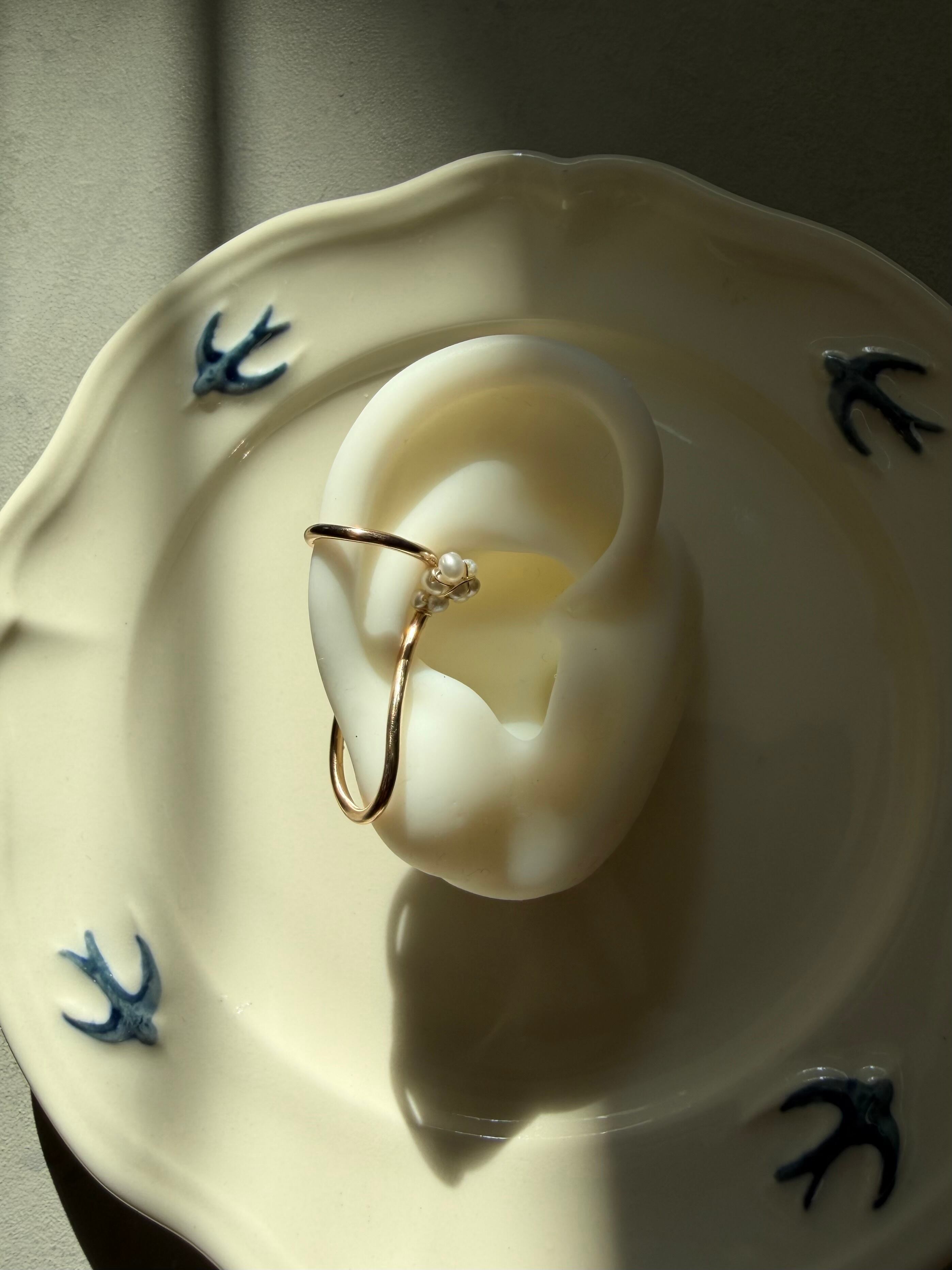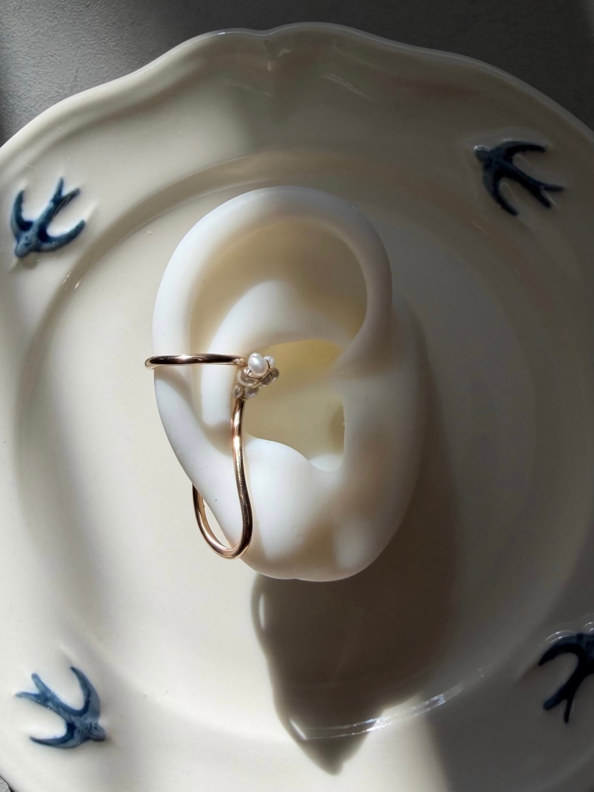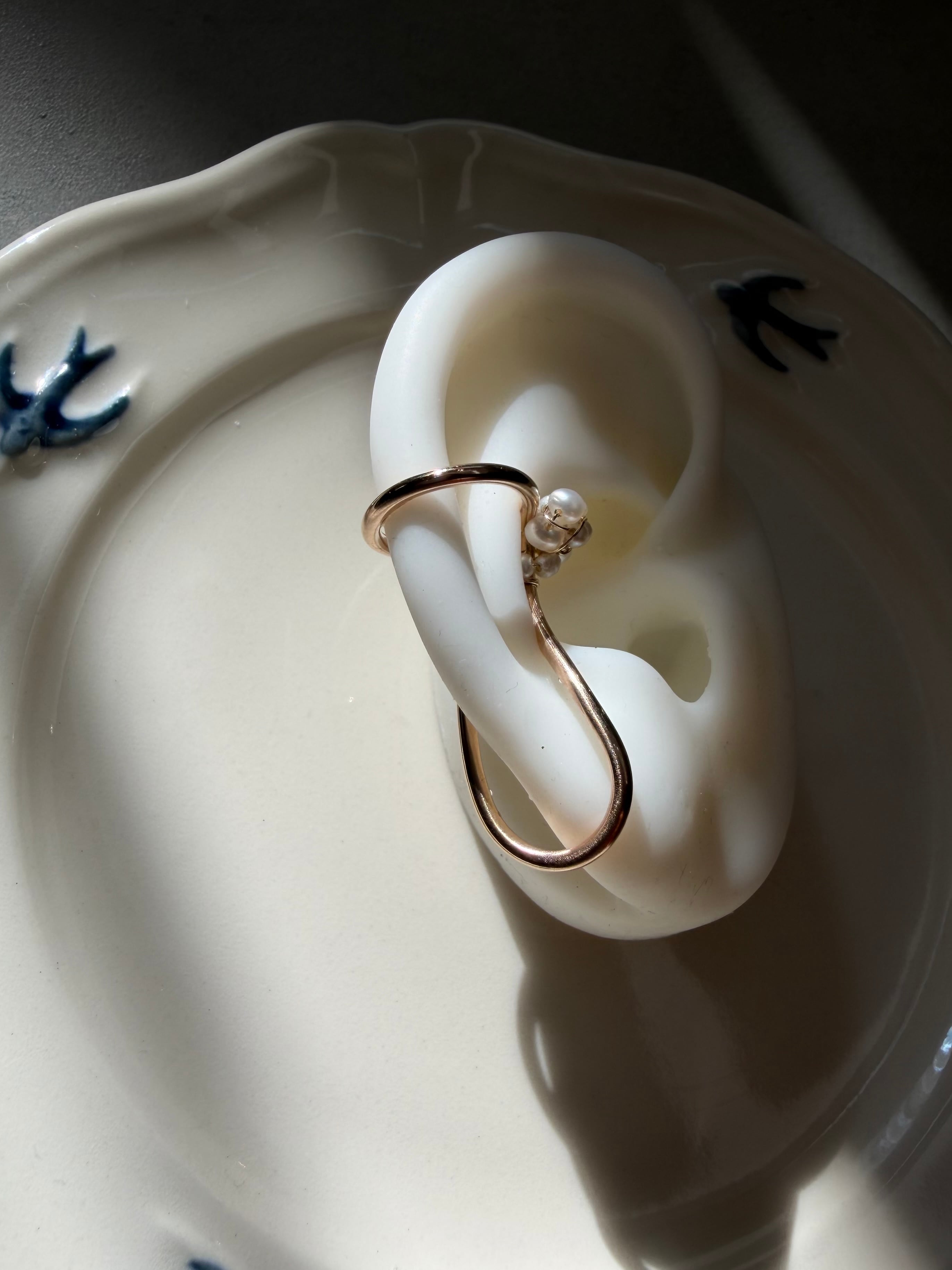 ・左耳に着けると、パールのないゴールドフィルドの美しいラインだけが際立ち、ミニマルで大人っぽい印象に。