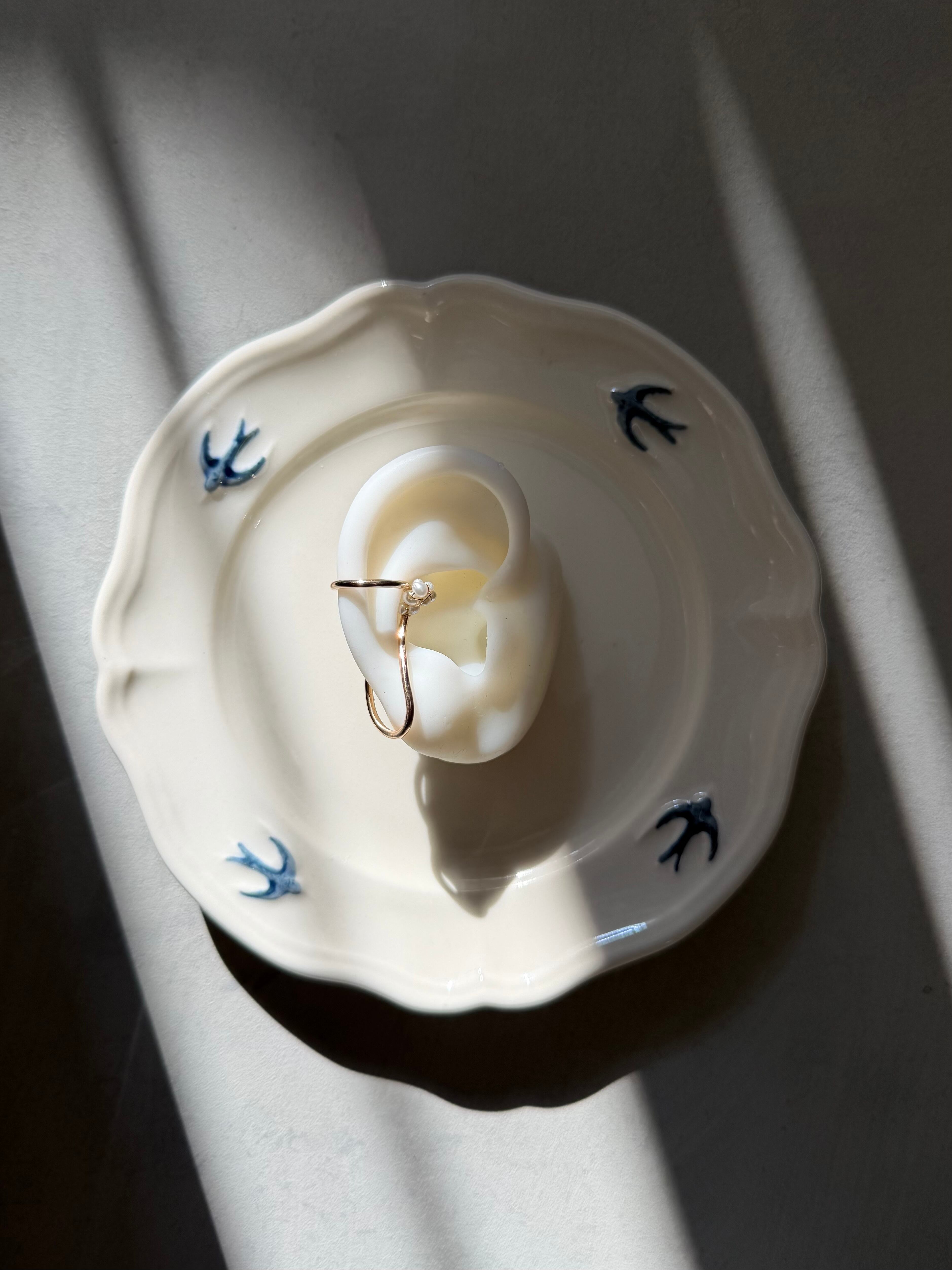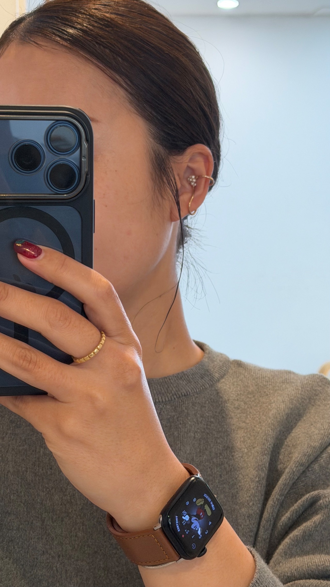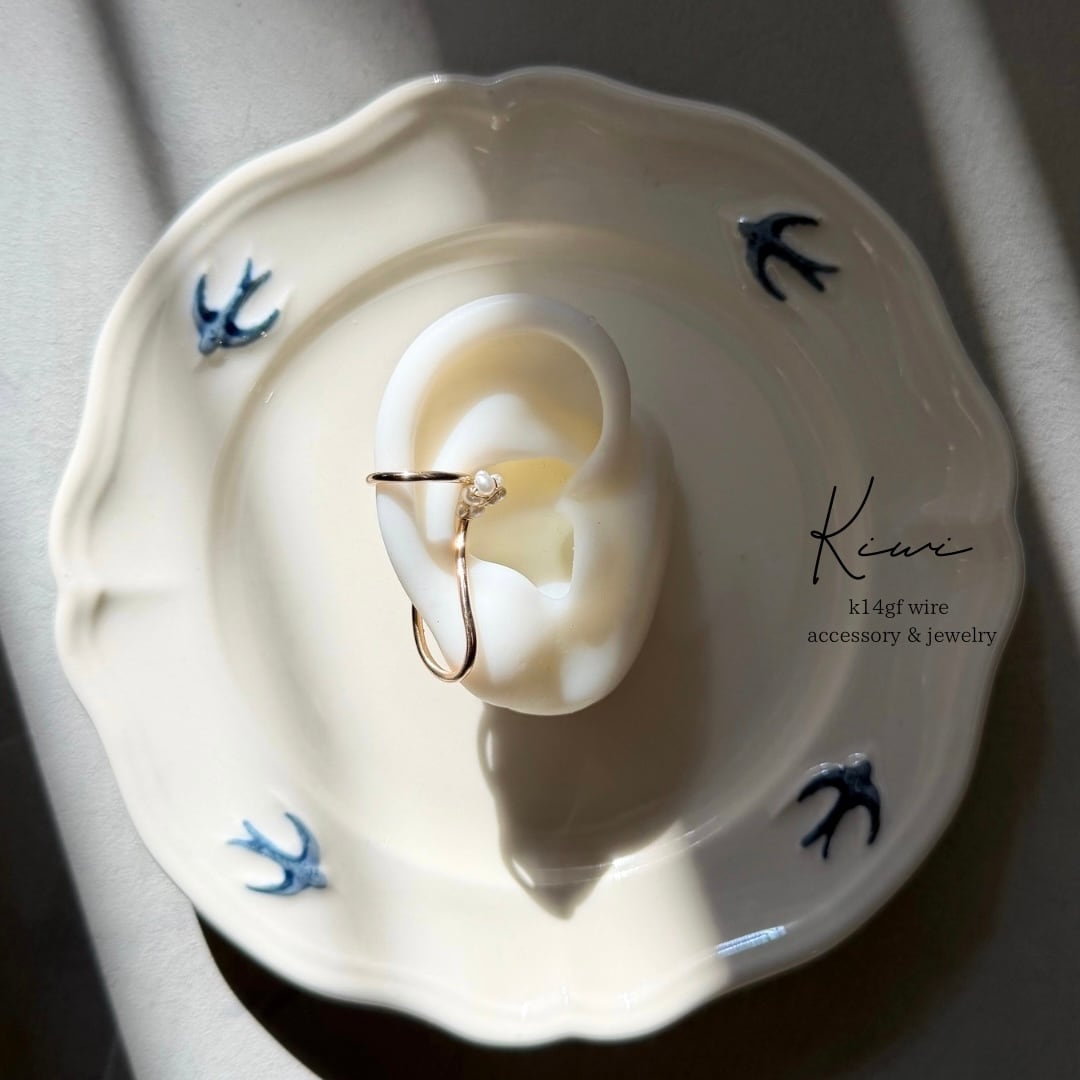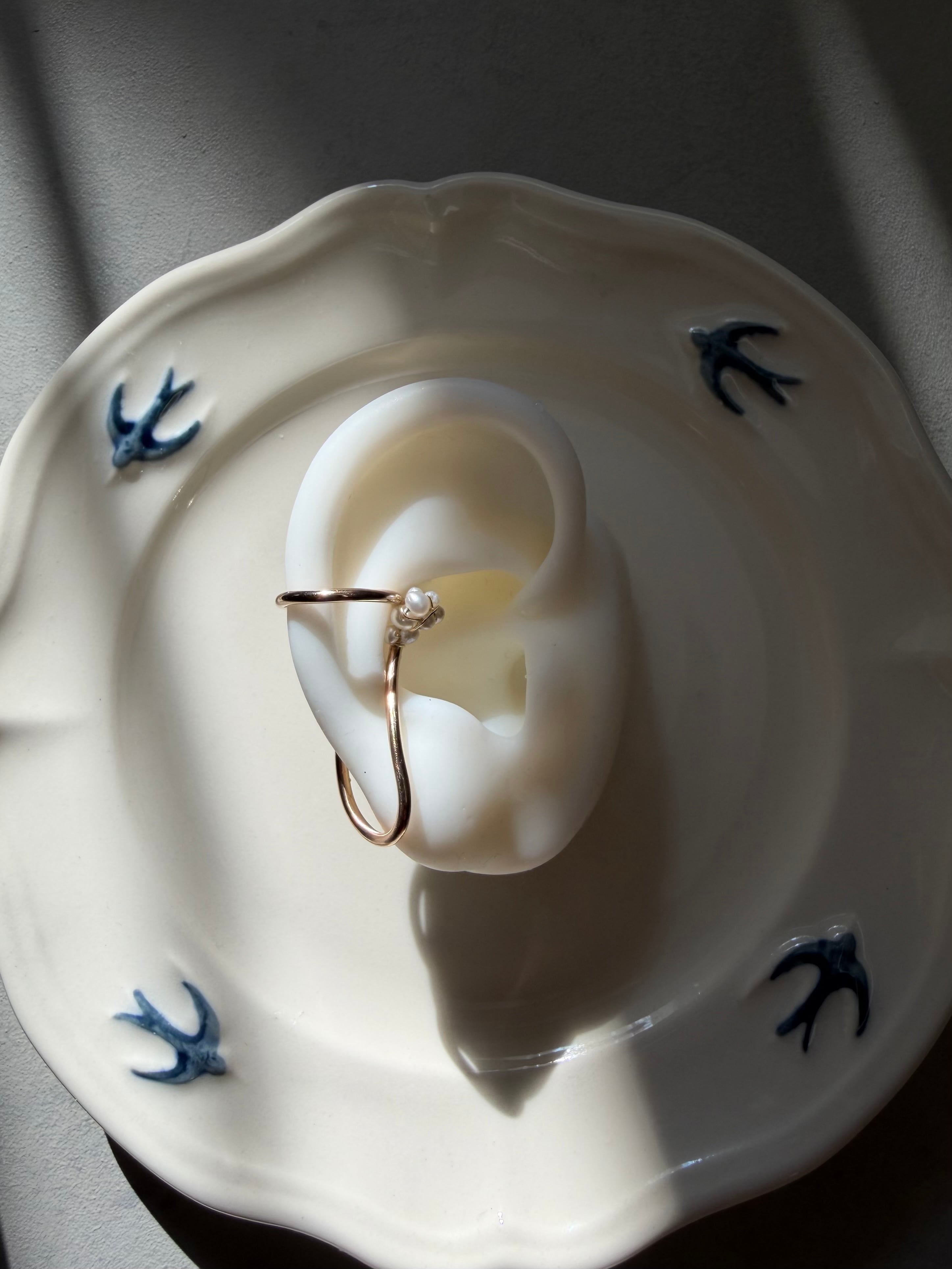 ・左耳に着けると、パールのないゴールドフィルドの美しいラインだけが際立ち、ミニマルで大人っぽい印象に。