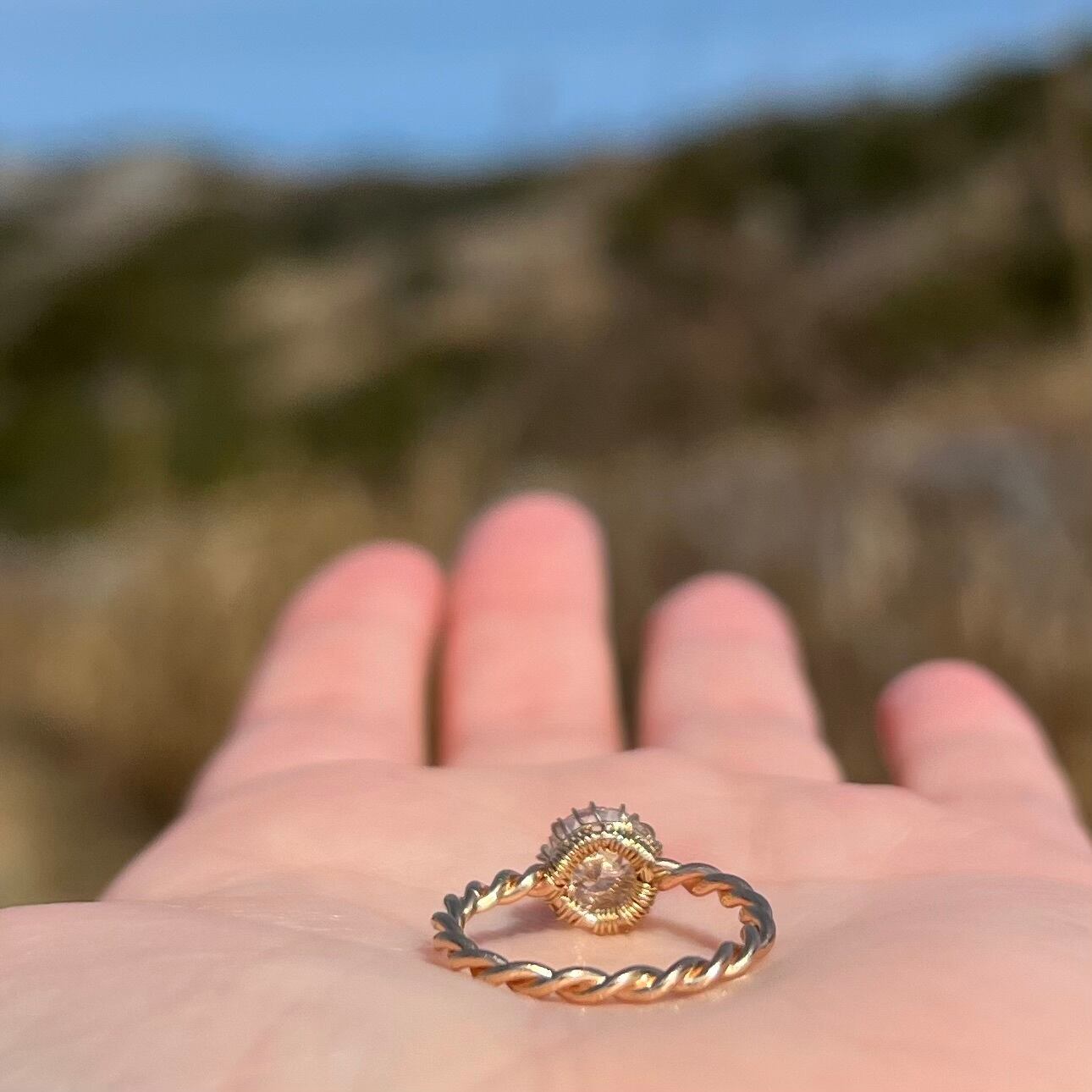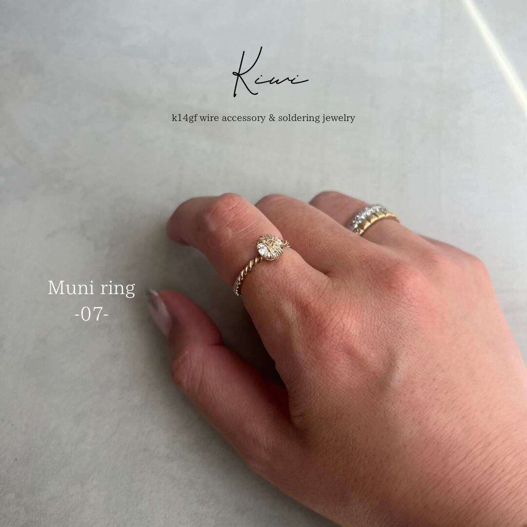 muni07(Cz)は、彫金とワイヤーワークを組み合わせたmuniシリーズの中でも、程よいサイズ感と軽やかさが魅力のリング。