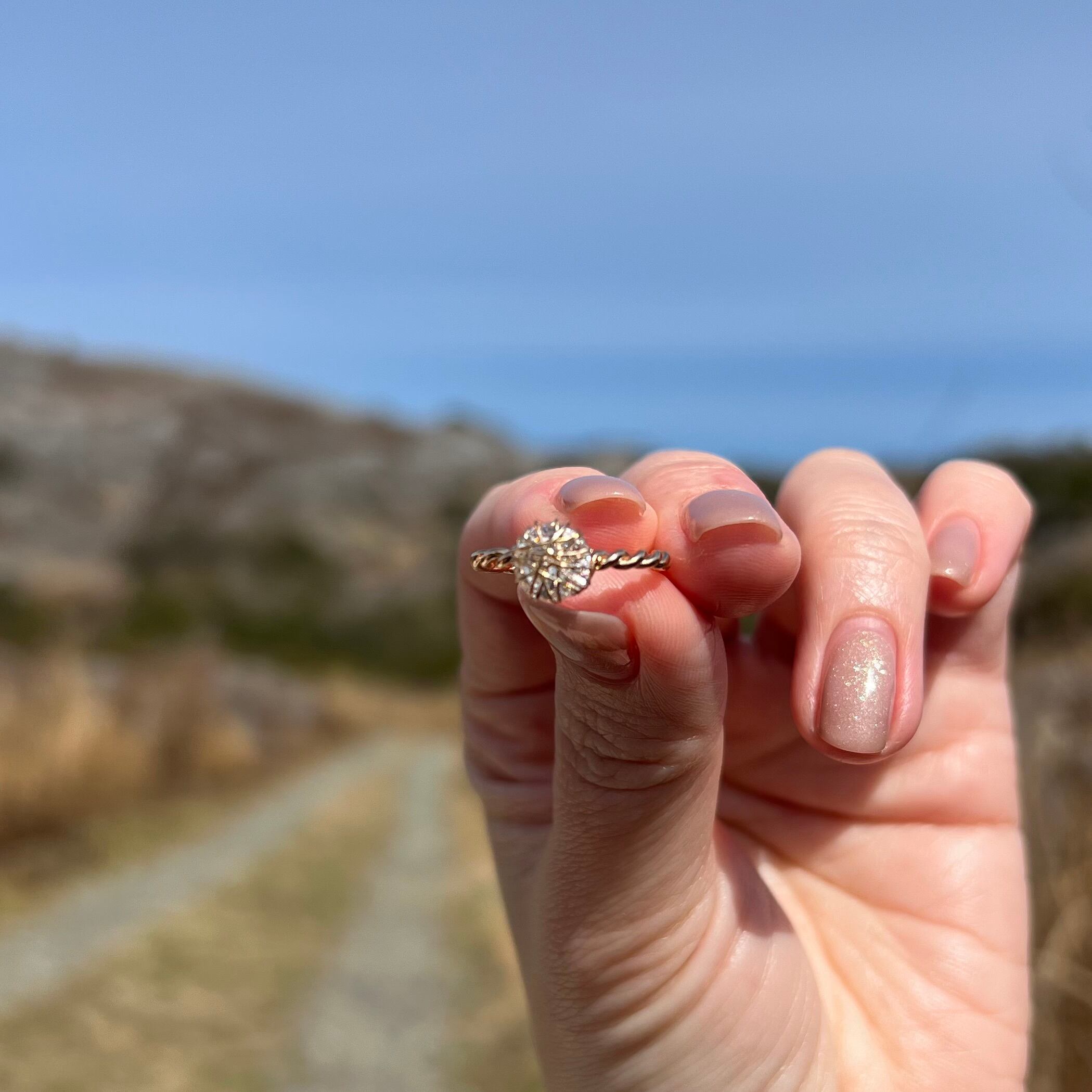 中央のクリアなアクセントも、全体の中で自然にきらめくように配置していて、主張しすぎず、でもちょっと気持ちを上げてくれる存在。